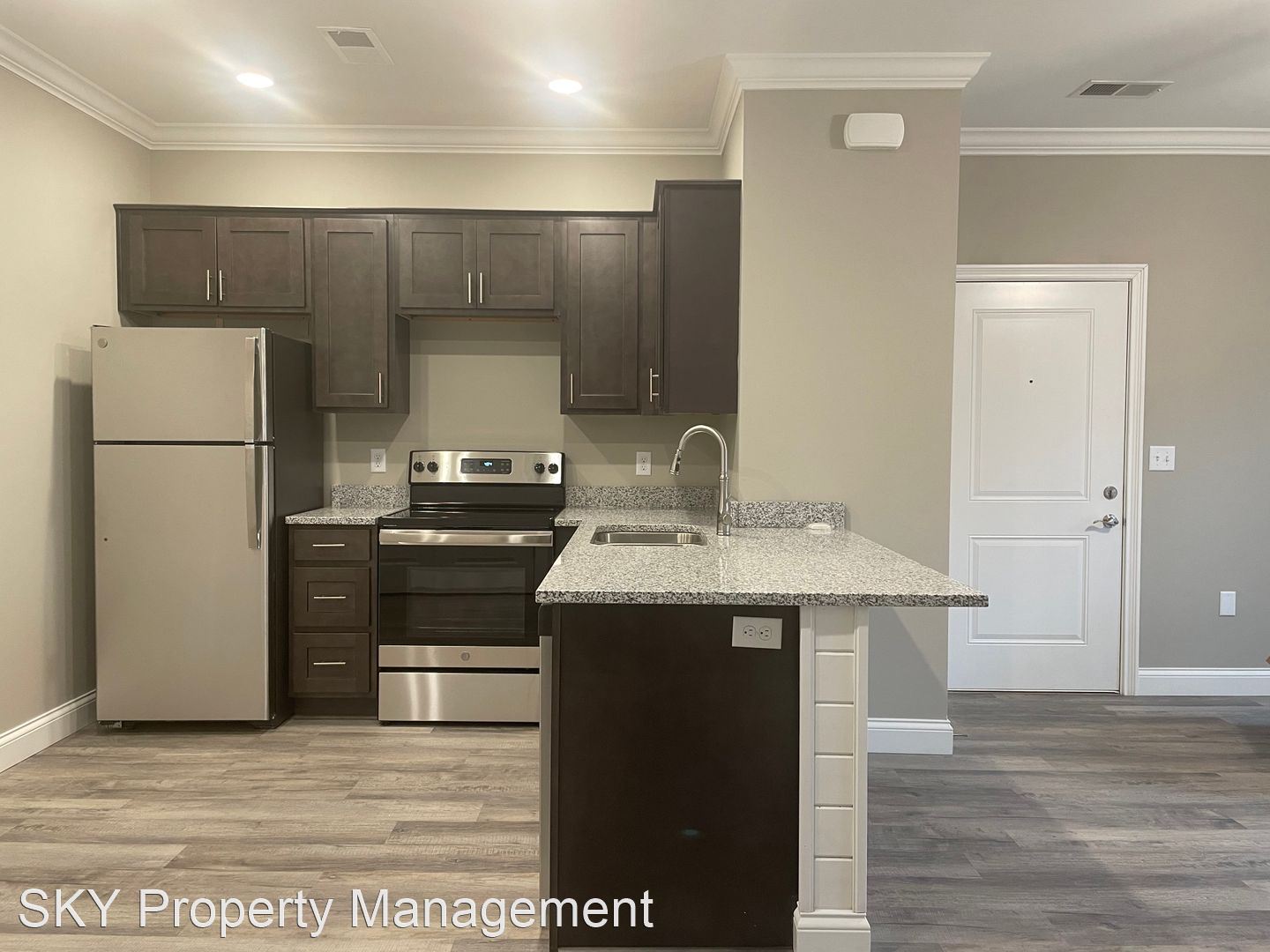 The Flats - Second-Floor Open Concept Flat Stainless Steel Kitchen Appliances Granite Counters Side by Side Washer and Dryer Connection Hardwood Laminate Throughout Patio with Outdoor Storage Closet